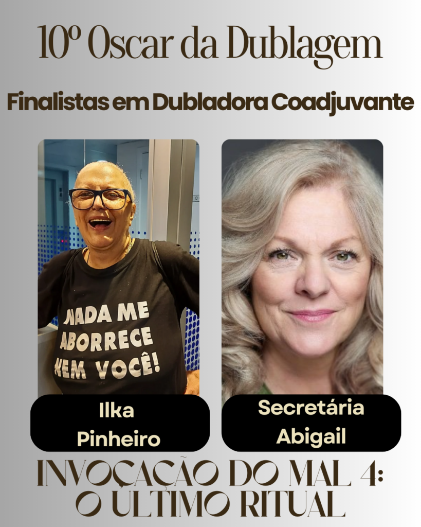 As finalistas, em ordem alfabética, dentre as melhores estreias de 2025, para “Melhor Dubladora em Personagem Coadjuvante”.